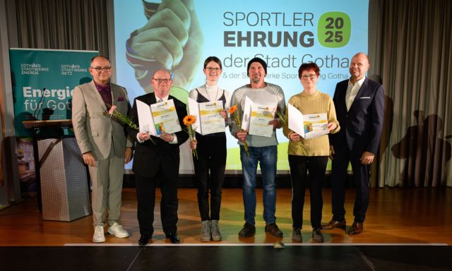 Am Freitag, den 05. Dezember 2025, fand im Bildungszentrum der Thüringer Landesverwaltung in Gotha die traditionelle Sportlerehrung der Stadt Gotha & der Stadtwerke Sportstiftung Gotha statt. In einem feierlichen Rahmen wurden Sportlerinnen und Sportler aller Altersklassen, Vereinsmannschaften sowie ehrenamtlich engagierte Persönlichkeiten ausgezeichnet. Die Preise wurden von der Stadtwerke Gotha Sportstiftung gestiftet und durch Oberbürgermeister Knut Kreuch gemeinsam mit Sven Anders, Geschäftsführer der Gothaer Stadtwerke ENERGIE, feierlich überreicht.