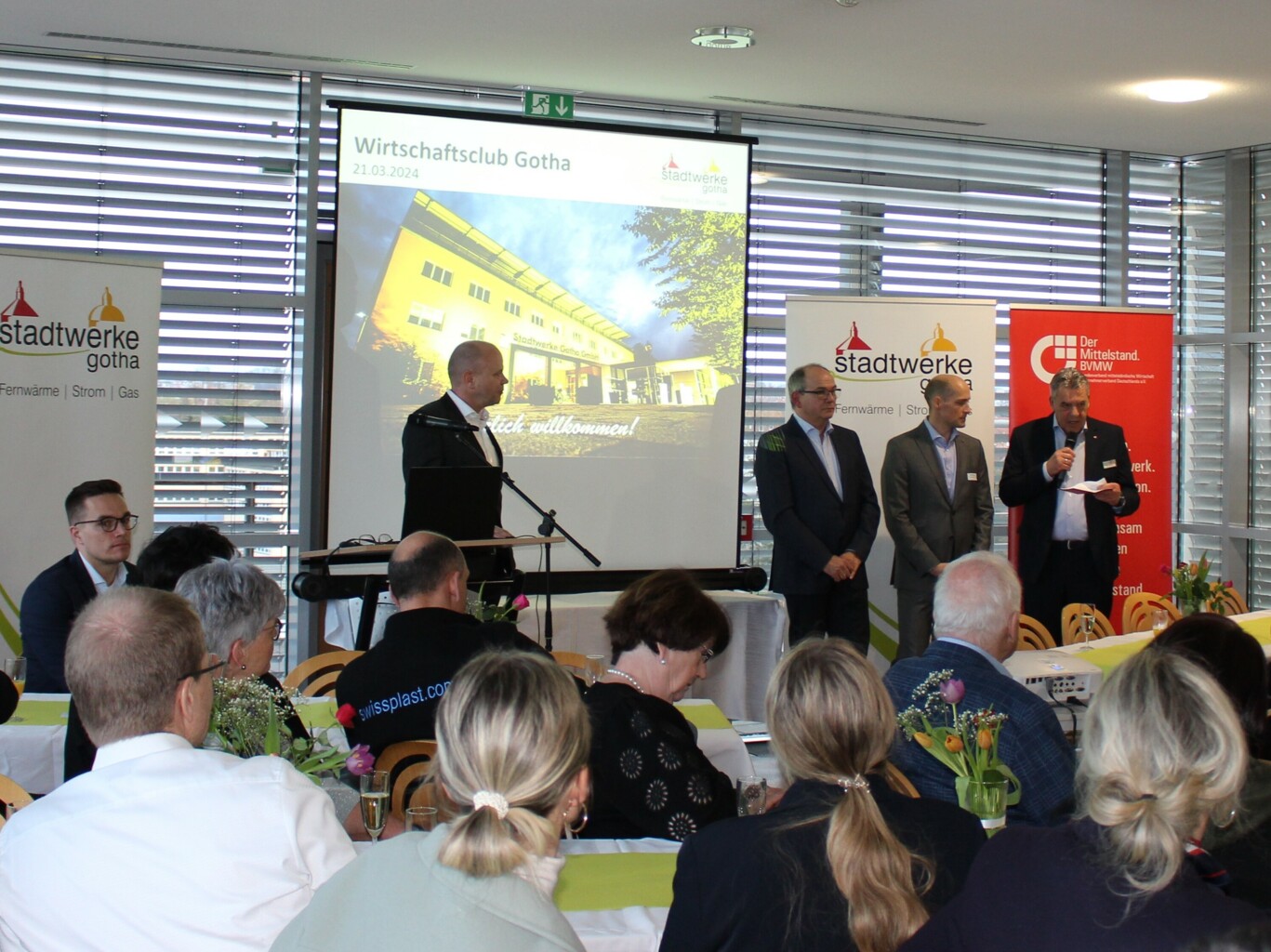 Rund viermal im Jahr nehmen Vertreterinnen und Vertreter der unterschiedlichsten Branchen an Treffen teil, um Impulse anderer Firmen zu erhalten und sich zu vernetzen. Oberbürgermeister Knut Kreuch, der auch Aufsichtsratsvorsitzender der Stadtwerke ist; Otto Eismann, Leiter des Kreisverbandes Gotha des Bundesverbands mittelständischer Wirtschaft (BVMW), und Steffen Heinze, Amtierender Amtsleiter Wirtschaftsförderungsamt, begrüßten die rund 60 Gäste des 1. Treffens des Wirtschaftsclubs im Jahr 2024.