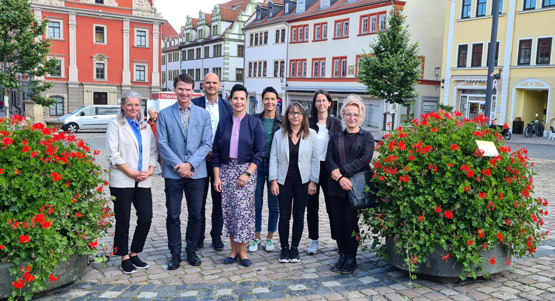 Im Bild v.l.n.r.: Cornelia Sebastian (TAG Wohnen und Service GmbH, Gotha), Detlef Mölter (Stadtwerke Gotha NETZ GmbH, Gotha), Ulf Zillmann (Bürgermeister, Gotha), Daniela Dammeyer (Autohaus Rainer Seyfarth GmbH & Co. KG, Gotha und Automobile Am Mönchhof GmbH, Gotha), Claudia Heß (Gartenamtsleiterin, Gotha), Christine Grund (Baugesellschaft Gotha mbH, Gotha), Dana Hellmann (Stadtwerke Gotha GmbH, Gotha) und Carla Bittorf (Sachbearbeiterin im Gartenamt, Gotha)